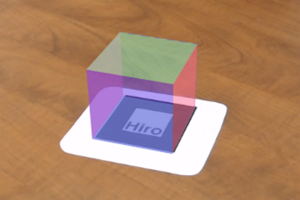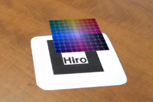 Un modelo 3D que se posiciona sobre un marcador Hiro.