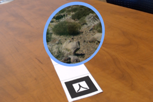 Un plano que se mueve arriba y abajo, encima de una marca Hiro.